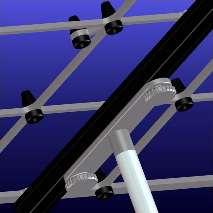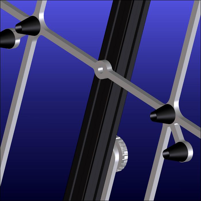 Aufgabe: Mit der akustischen Kamera werden Schallpegel von starren oder sich bewegenden Körpern in ihrer Größe lokalisiert. Bei der Gestaltung und Konstruktion wird hier auf eine einfache und schnelle Montage und Demontage des Messsystems hohen Wert gelegt. Ein Modulsystem in der Halterung gewährleistet den Einsatz anders geformter Arrays. Hohe Formbeständigkeit, die Beständigkeit gegenüber Umwelteinflüssen und eine kostengünstige Herstellbarkeit sind ebenfalls Gesichtspunkte die hier Beachtung fanden.