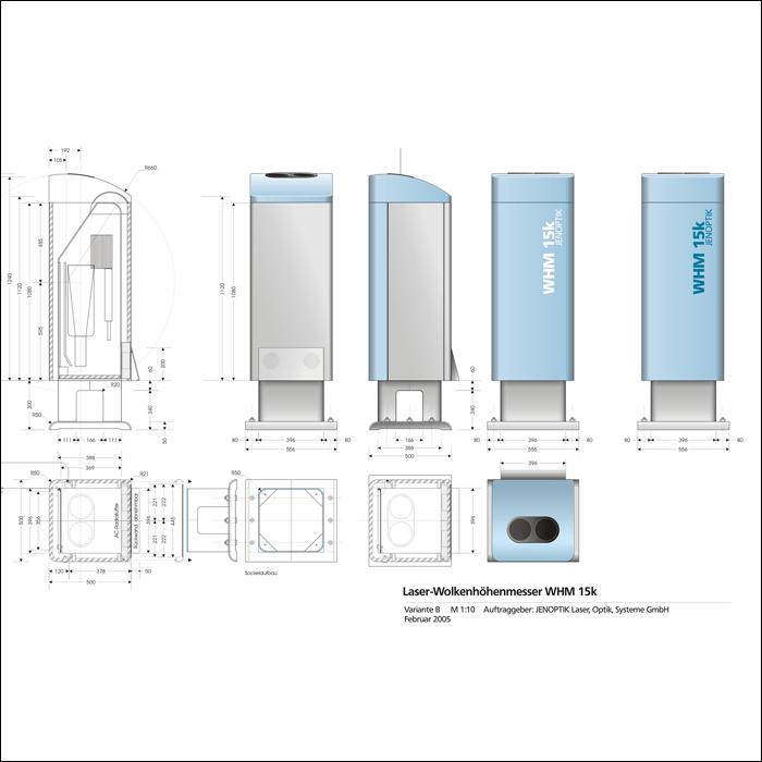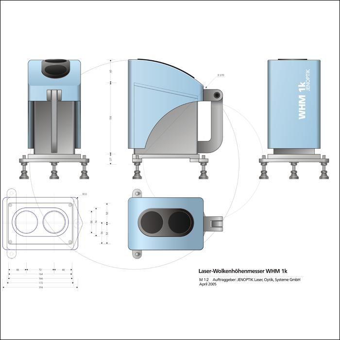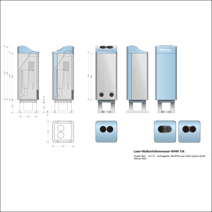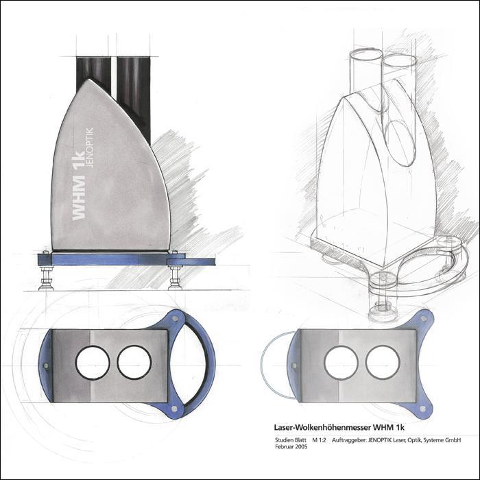 Die Firma JENOPTIK Laser, Optik Systeme GmbH entwickelt und produziert Laser-Messysteme für unterschiedlichste Anwendungen. Der Fokus des Designprozesses lag in der Schaffung einer Produktfamilie, der in Größe und technischer Ausstattung unterschiedlichen Geräte WHM 15K und WHM 1K. Das leistungsfähigere Gerät WHM 15K misst bis zu 15 km in die Höhe, das Gerät